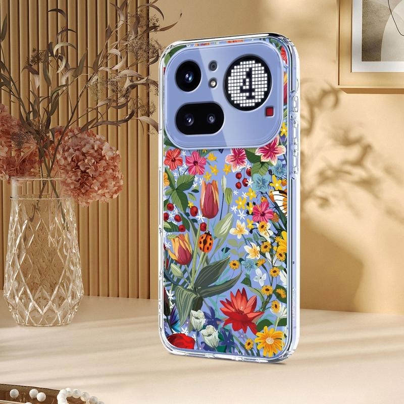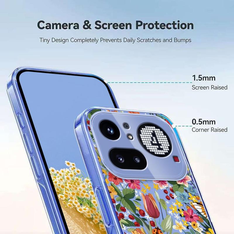 Transform your Nothing Phone (4a) Pro into a handheld piece of art. The Floral edition surrounds your phone with a dreamy wash of lavender blooms and delicate butterflies printed in high-definition inks that resist fading. Crafted from flexible, shock-absorbing TPU, the case hugs every curve of your device while raised lips guard the screen and camera lenses from daily knocks. A matte, anti-smudge coating keeps the design crisp and your phone fingerprint-free, all without blocking Qi wireless charging.