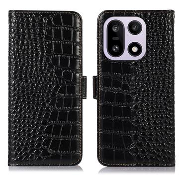 OnePlus 15 Crocodile Series Wallet Leather Case with RFID - Black