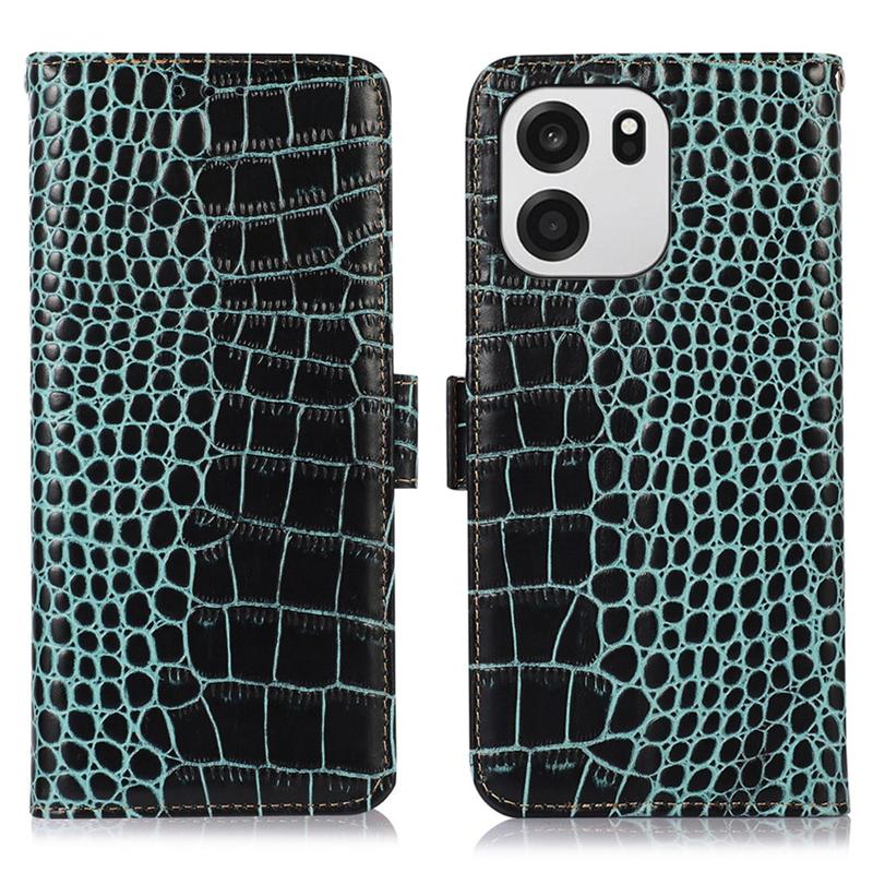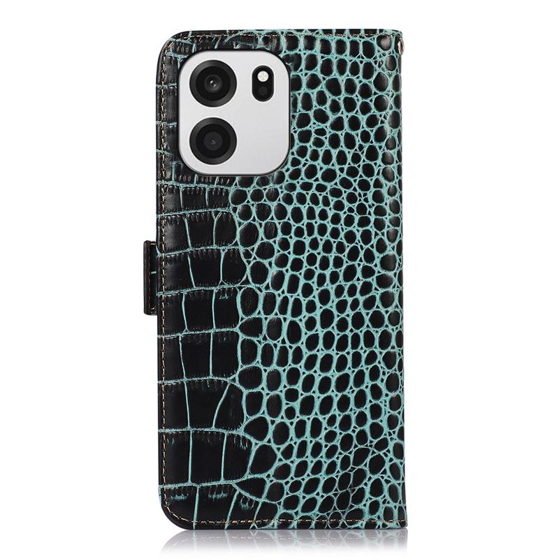 A lightweight and soft wallet case with a unique crocodile texture, the perfect choice to protect your OnePlus Turbo 6, Turbo 6V and keep it undamaged. It's made of high-quality genuine leather and inner TPU material, designed with three card slots, an ID slot, and a pocket for cash, ideal for carrying your essentials next to your OnePlus Turbo 6, Turbo 6V. Also, RFID technology effectively blocks signals and keep's your data secured.