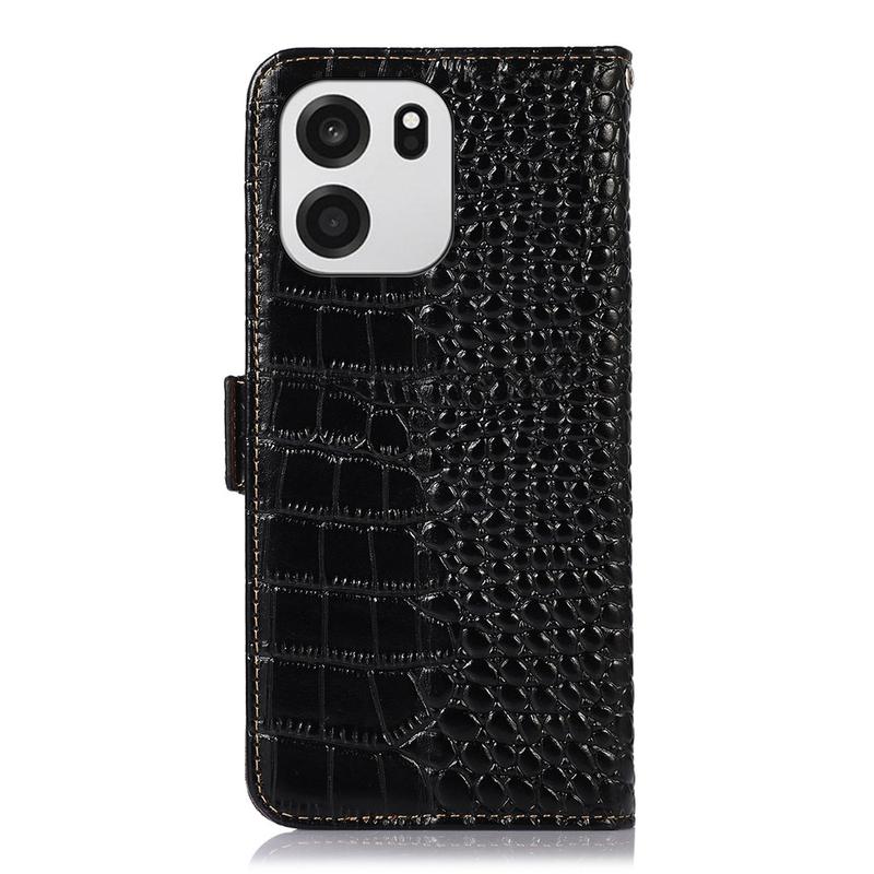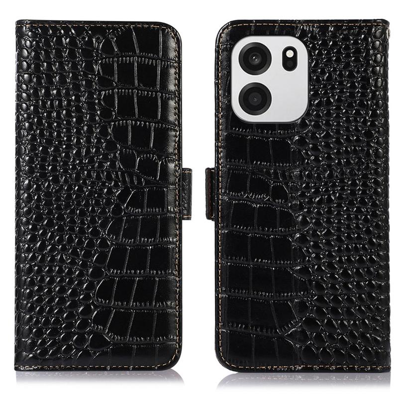 A lightweight and soft wallet case with a unique crocodile texture, the perfect choice to protect your OnePlus Turbo 6, Turbo 6V and keep it undamaged. It's made of high-quality genuine leather and inner TPU material, designed with three card slots, an ID slot, and a pocket for cash, ideal for carrying your essentials next to your OnePlus Turbo 6, Turbo 6V. Also, RFID technology effectively blocks signals and keep's your data secured.
