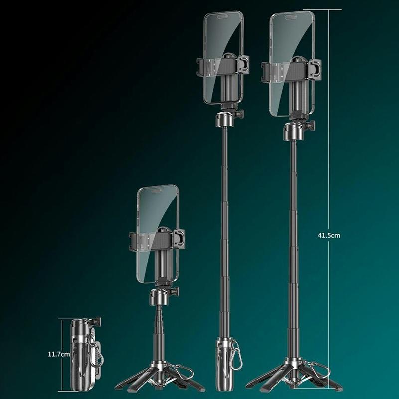 The collapsible design extends from 11.7 cm to 41.5 cm, making it easy to store in a bag or backpack. Its lightweight build ensures comfortable use during travel and outdoor shoots.