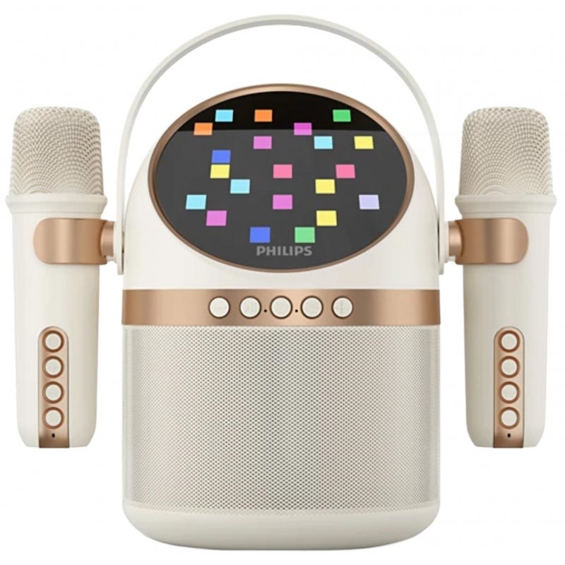• Philips TAS2509WT/00 Portable Bluetooth Karaoke Speaker - 5W RMS (10W Max), 2 Wireless Mics, LED Lights, 15h Battery, USB-C