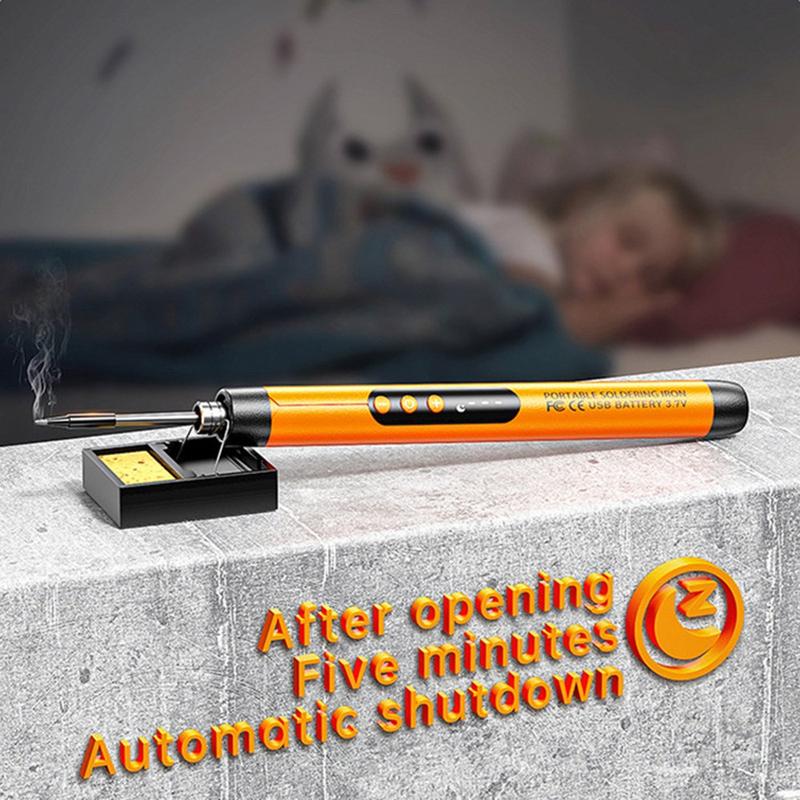 - Portable cordless soldering iron powered by a built-in 1000mAh lithium battery