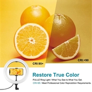 The ring light is made of 2x60pcs energy-saving LED beads, it heat dissipation is excellent, constant current drive and high color rendering, soften the light source and enhance skin tone in portraits photography