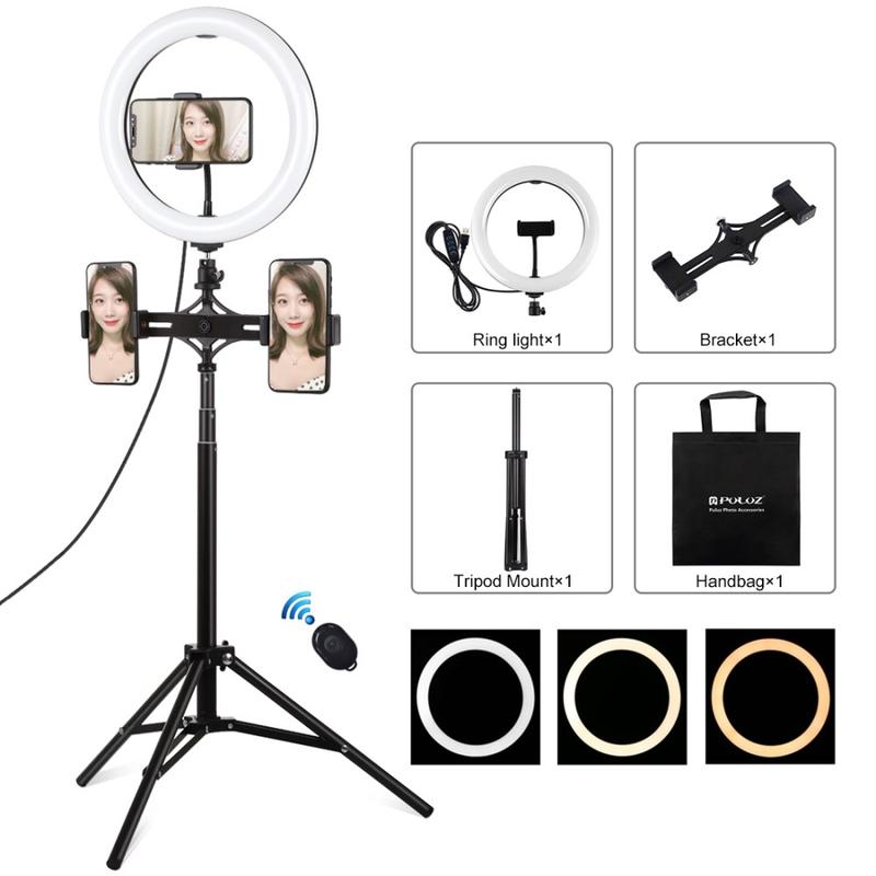 • PULUZ PKT3066B 10.2" LED Selfie Ring Light Cell Phone Clamp Tripod Stand for YouTube Blogger Video Shooting