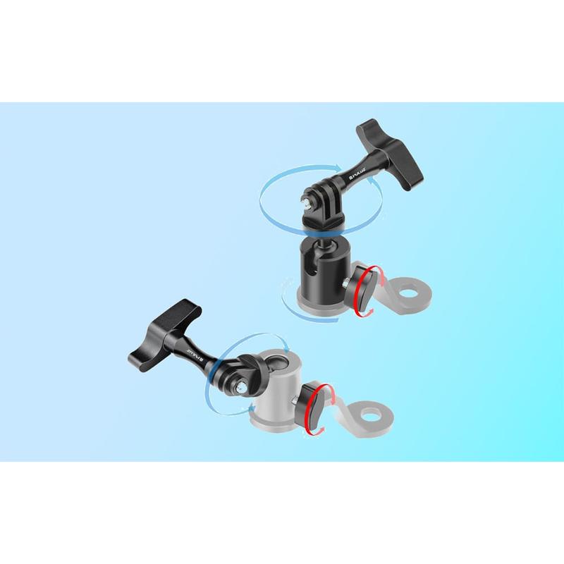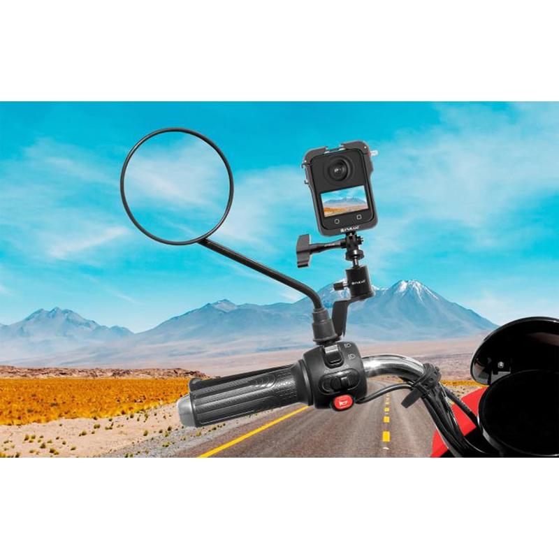 Puluz PU1056B Aluminum Motorcycle Rearview Mirror Camera Mount - 360-Degree Rotation, 1/4" Thread + GoPro Mount, Up to 2kg Load, Fits 10mm Mirror Bolts