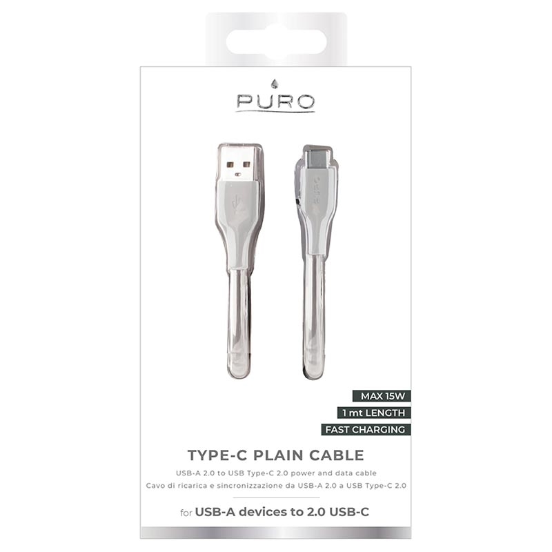 Puro Plain USB-A/USB-C cable - 1m, 15W - White