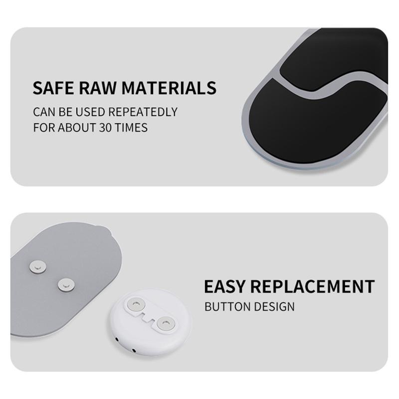 The reusable electrode pads are designed for repeated use and attach with a practical magnetic system for quick replacement. Their sweat-resistant surface helps support everyday comfort, while the compact charging case keeps both massage units powered and protected between sessions. With up to 27 hours of total battery life from the charging case, this portable massager is well suited for travel, office breaks, and daily recovery routines.