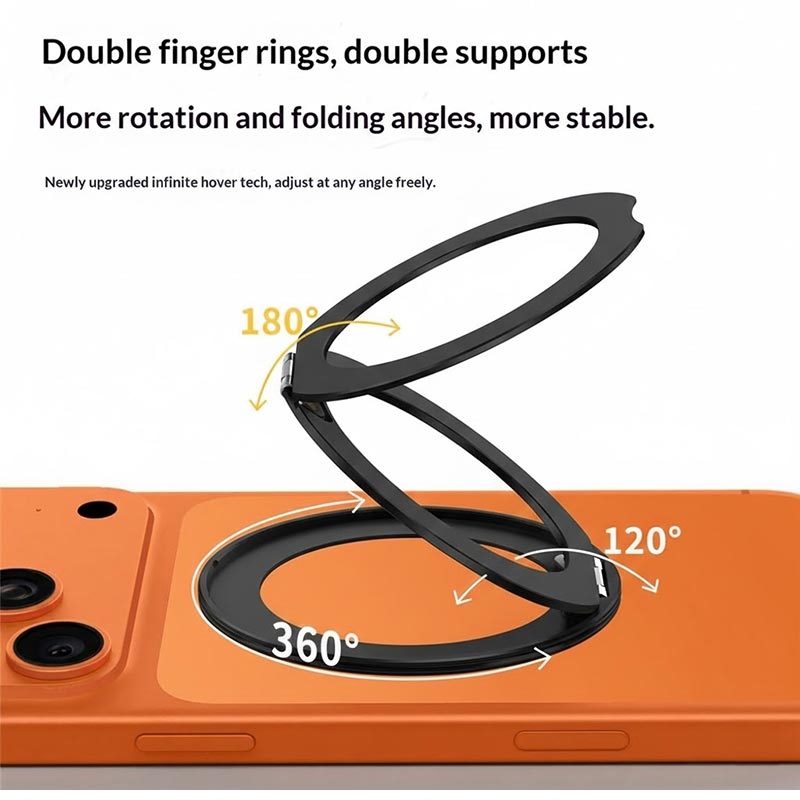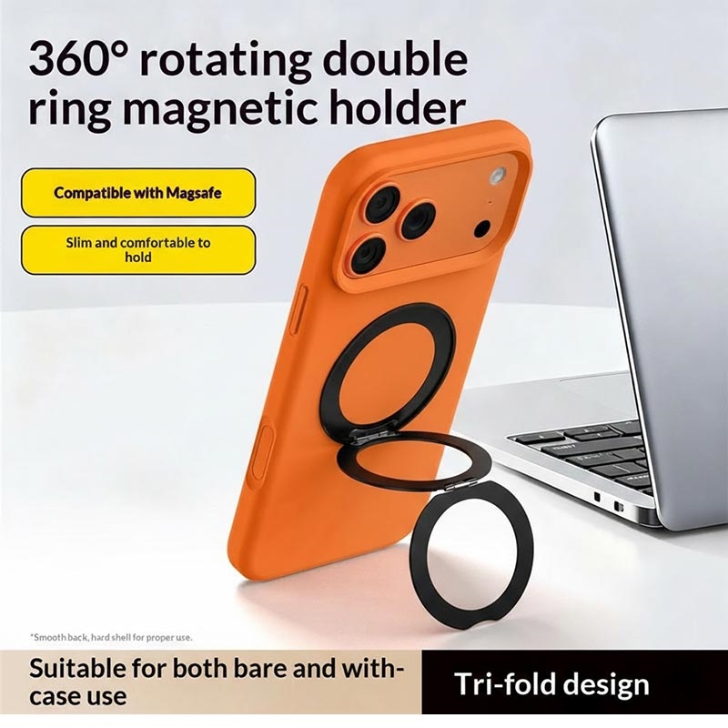 • Q11 Ultra-Thin Tri-Fold Magnetic Ring Stand - 360° Rotating Adhesive Phone Holder, MagSafe Compatible