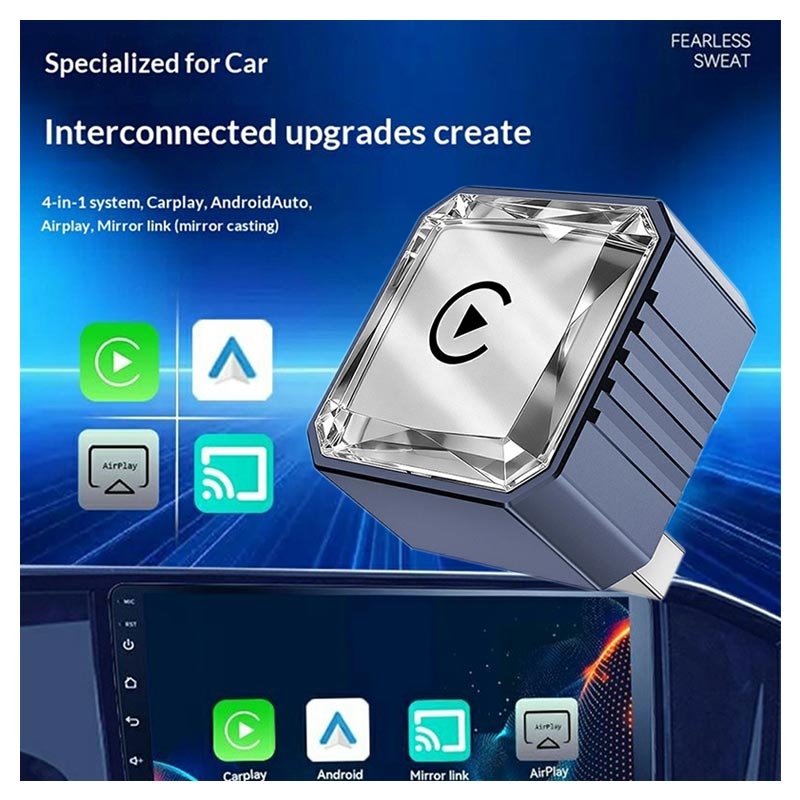 Q1BVS Diamond Shape 4-in-1 Wireless CarPlay Adapter / CarPlay, Android Auto, AirPlay and Mirror Link Smart Box