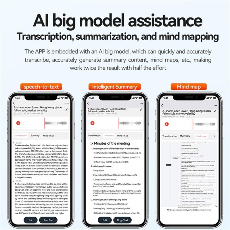 - AI-Powered Transcription: Connect to the AIREC-APP via Bluetooth to transcribe and translate speech in 188 languages, powered by ChatGPT.