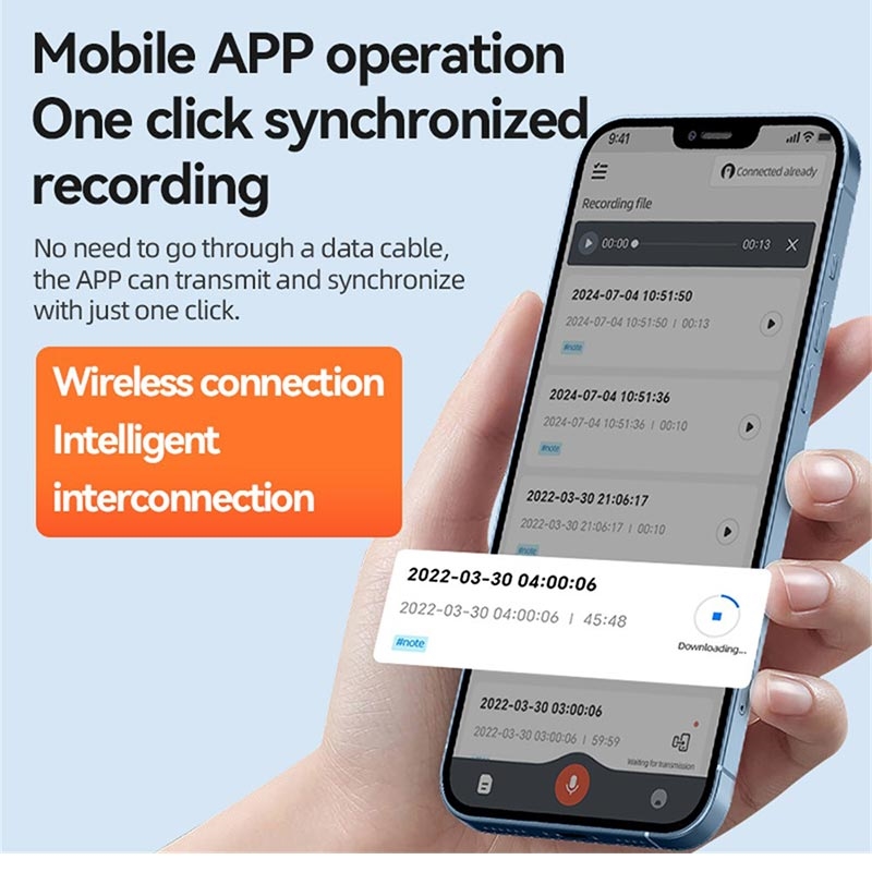 One-Touch Recording: Start recording instantly with a simple two-level button, perfect for quick notes or longer sessions.