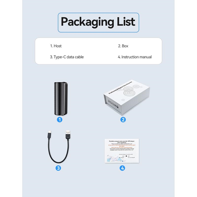 Magnetic Attachment: Securely place the recorder on metallic surfaces for discreet or hands-free use.
