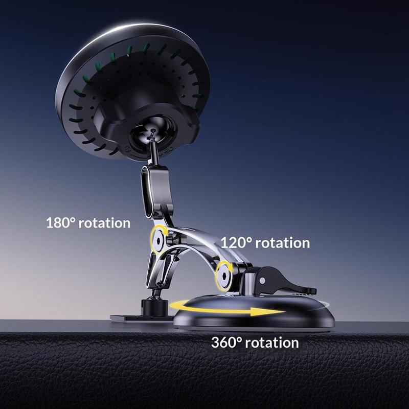 QH-AKD248 Magnetic Car Mount with 15W Wireless Charging and Vacuum Suction for Dashboard or Windshield