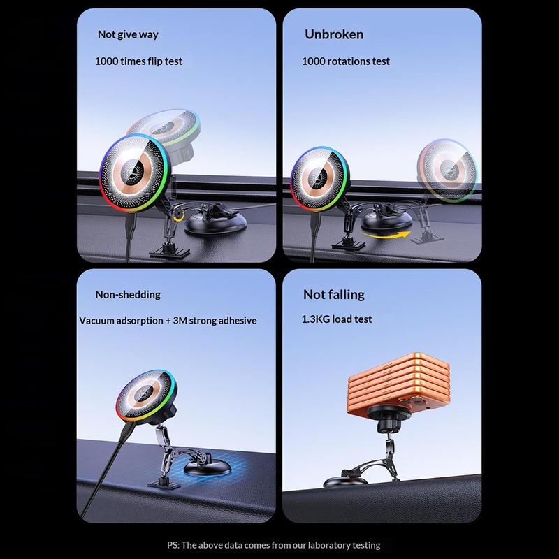 The QH-AKD248 is designed to keep your phone charged, stable and easy to see while you drive. It combines a strong magnetic holder with 15W wireless charging, so you can mount your phone quickly and power it at the same time. The vacuum suction base is made for reliable use on the dashboard or windshield, giving you a cleaner and more convenient in-car setup.