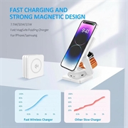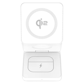 Qi2 15W 3-in-1 Foldable Magnetic Wireless Charger Stand - White