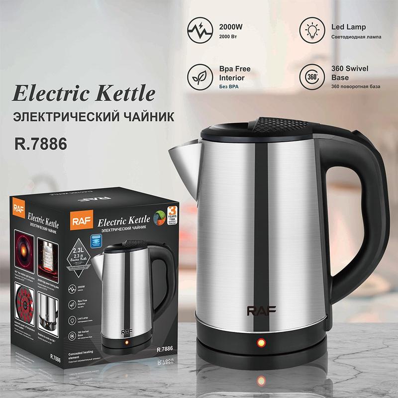 RAF R.7886 Electric Kettle 2.0L - 2000W Stainless Steel Jug Kettle with Auto Shut-Off & LED Indicator (EU Plug)