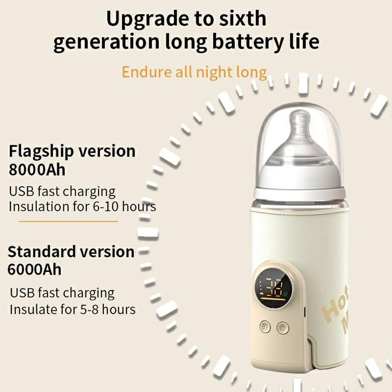 • Portable Baby Bottle Warmer - Smart Temperature Control, 360° Heating Sleeve with USB/Type-C Fast Charging