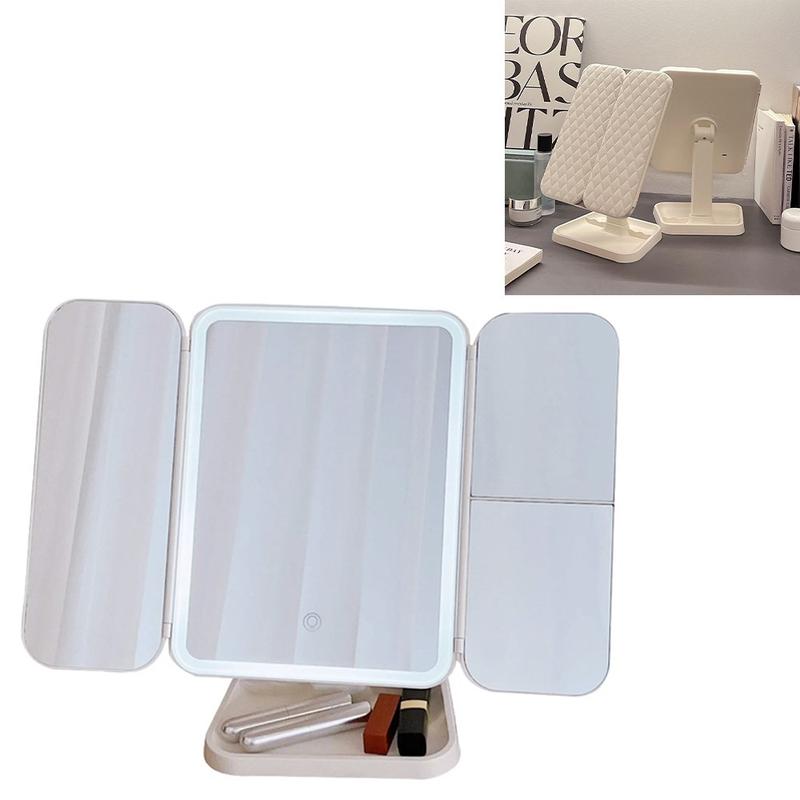 Rechargeable Tri-Fold LED Makeup Mirror - 1X/2X/3X Magnifying Beauty Mirror with Adjustable Lighting and 2000mAh Battery