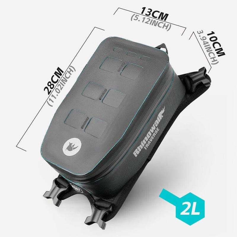 • Rhinowalk MCY2601 Motorcycle Tank Bag 2L - Waterproof Reflective Front Storage Bag with MOLLE System for TRaverse Series