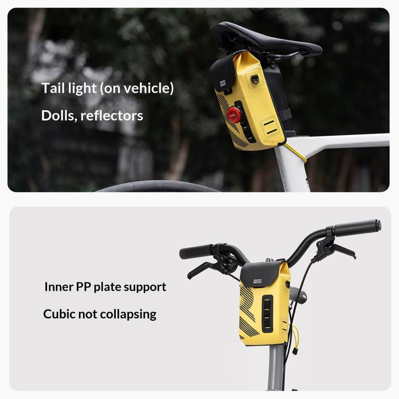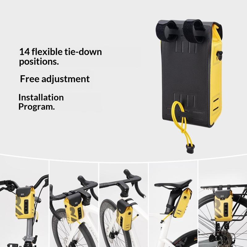 Carry essentials safely in any weather with the ROCKBROS AS-160 handlebar bag. Built for road bikes, mountain bikes, and folding bikes, it combines waterproof fabric with seamless welding to help keep your items dry on rainy rides. The magnetic flip cover enables quick one-handed access while riding, and the structured interior with PP board support keeps the bag stable and well-shaped even when packed. A detachable shoulder strap lets you switch from bike bag to casual shoulder bag in seconds.