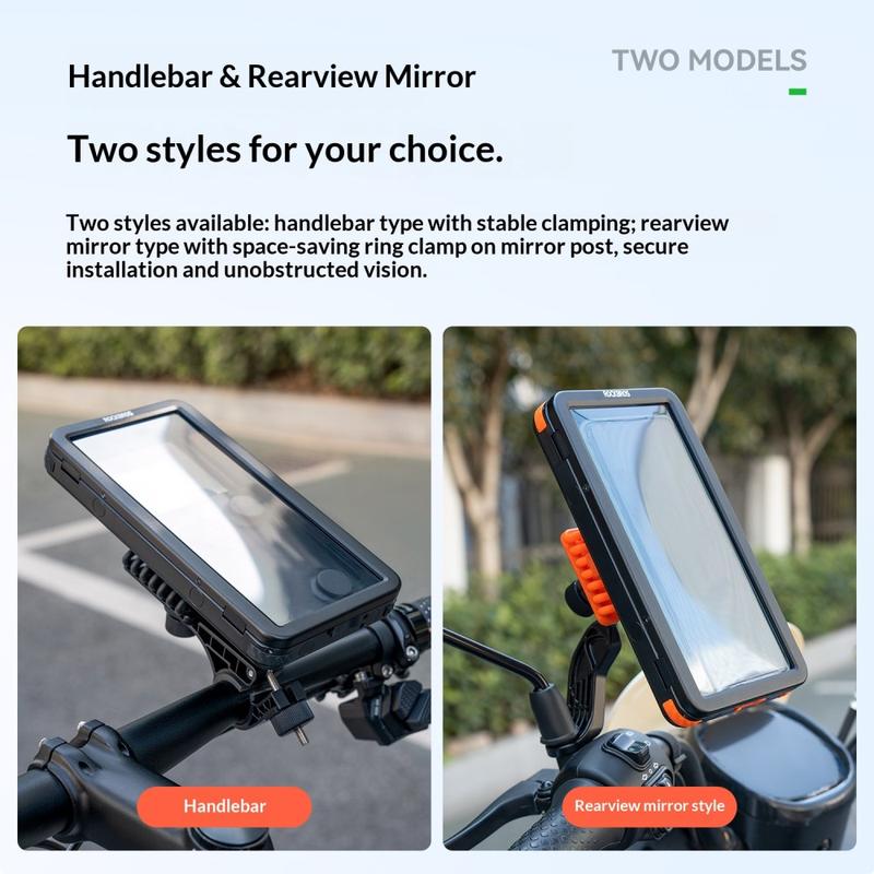 - Waterproof handlebar phone holder for bicycles and e-bikes