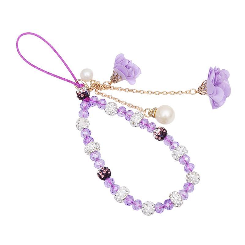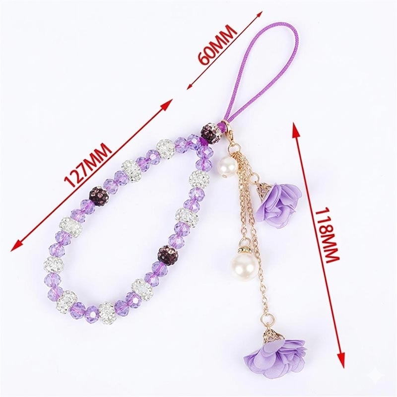 Add an elegant detail to your phone with this 18.7cm crystal bead phone lanyard. Designed as both a decorative accessory and a practical wrist strap, it combines crystal-style beads, rhinestone-look metal accents, rose flower charms, and a faux pearl pendant for a refined everyday look.