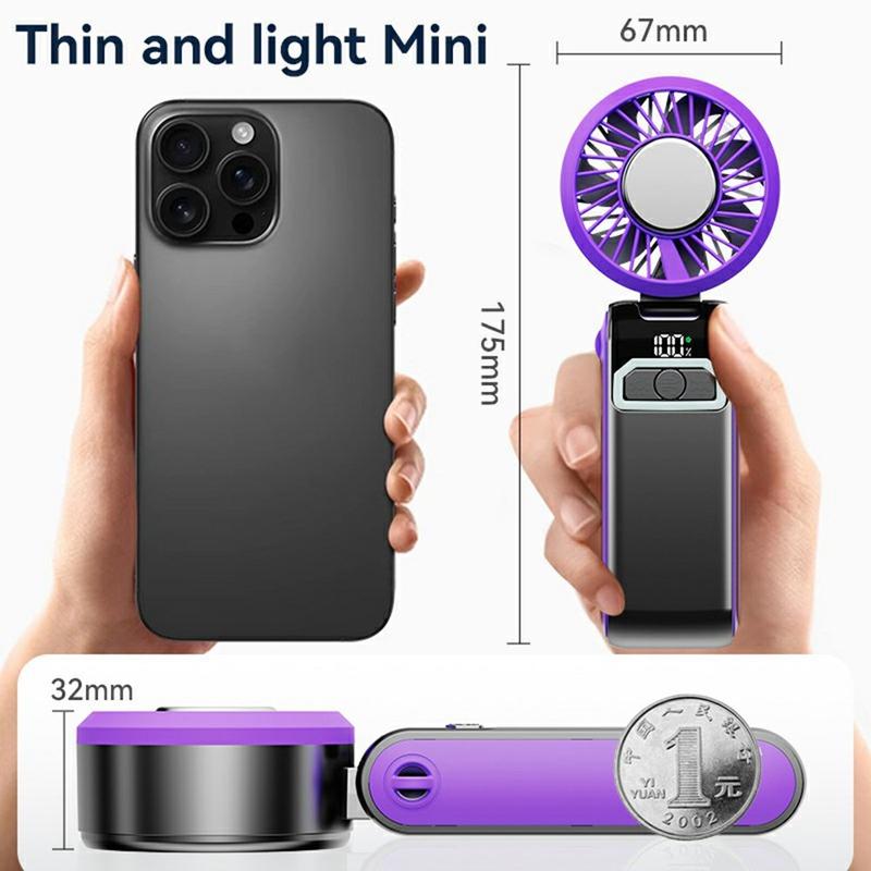 S2 Handheld Portable Turbo Fan - Rechargeable Pocket Fan with 100 Speeds, LED Display and Foldable 3-in-1 Design