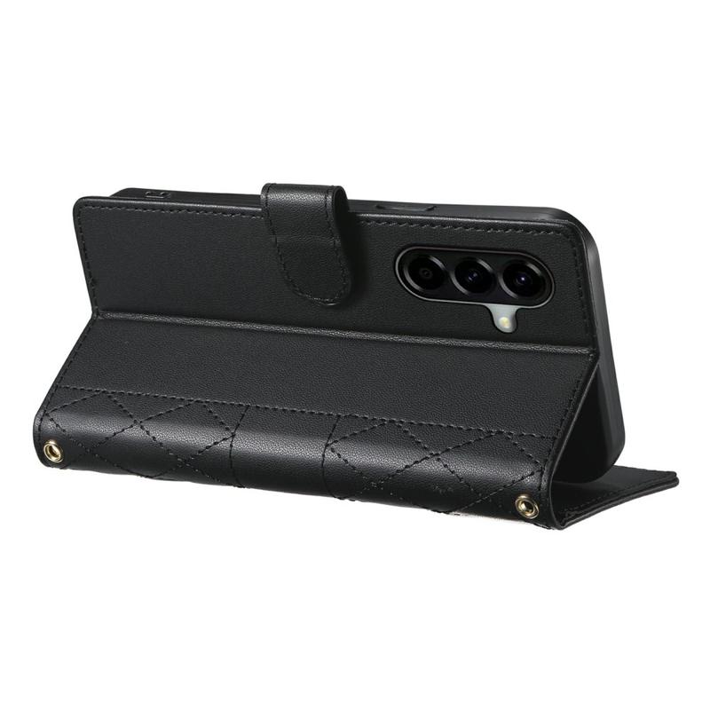 • Luxury Quilted Wallet Case with Shoulder & Wrist Strap for Samsung Galaxy A37 - Rhombus Pattern Protective Cover