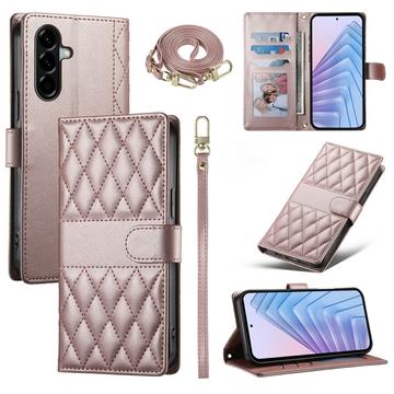 • Luxury Quilted Wallet Case with Shoulder & Wrist Strap for Samsung Galaxy A57 - Rhombus Pattern Protective Cover