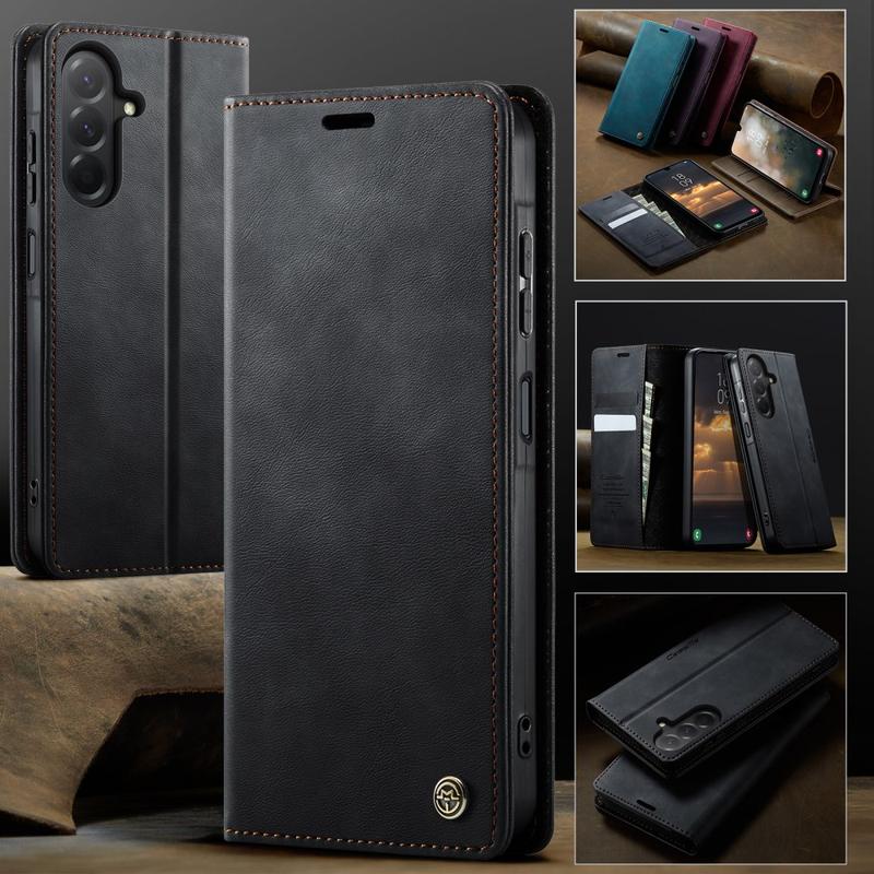 The CASEME 033 Series Wallet Case for Samsung Galaxy A57 is crafted from calf texture polyurethane combined with TPU, offering full-body protection against scratches, impacts, and daily wear while maintaining a premium, elegant look.