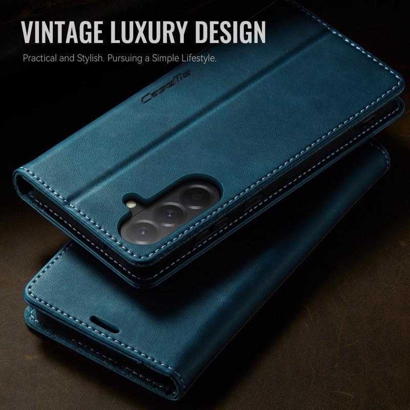 The CASEME 033 Series Wallet Case for Samsung Galaxy A57 is crafted from calf texture polyurethane combined with TPU, offering full-body protection against scratches, impacts, and daily wear while maintaining a premium, elegant look.