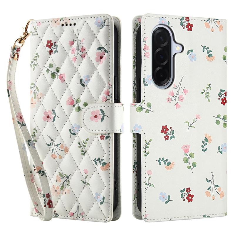 Refresh your Samsung Galaxy A57 with a slim flip wallet that blends secure protection and everyday practicality. The rhombic stitched front and tiny floral pattern add elegant style, while a soft TPU shell cushions drops and a polyurethane wrap guards against scratches. Multiple card slots, a cash pocket and an included wrist strap make this case the one-stop carry solution for commute, travel or night out.