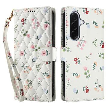 Rhombic Floral Wallet Case for Samsung Galaxy A57 - with Strap and Card Slots