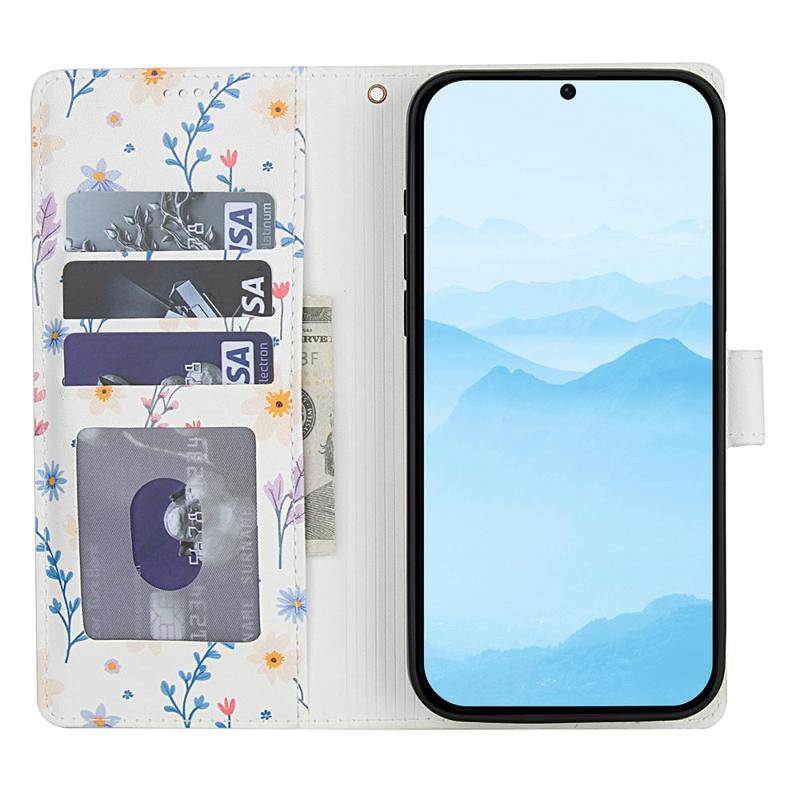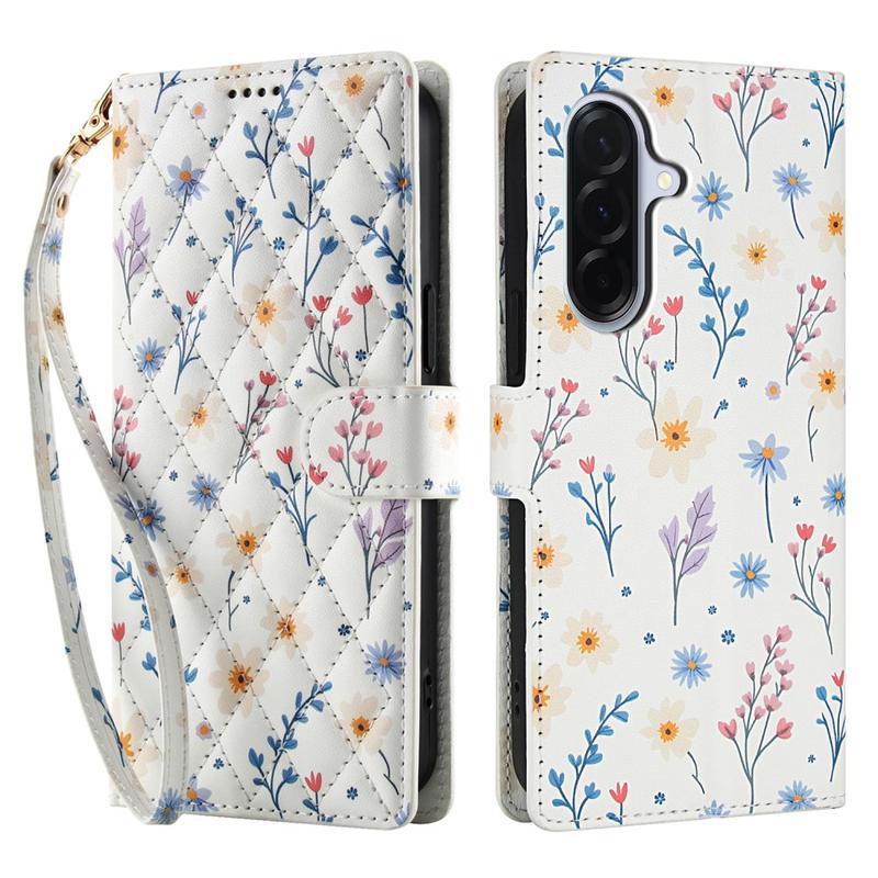 • Rhombic Floral Wallet Case for Samsung Galaxy A57 - with Strap and Card Slots