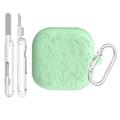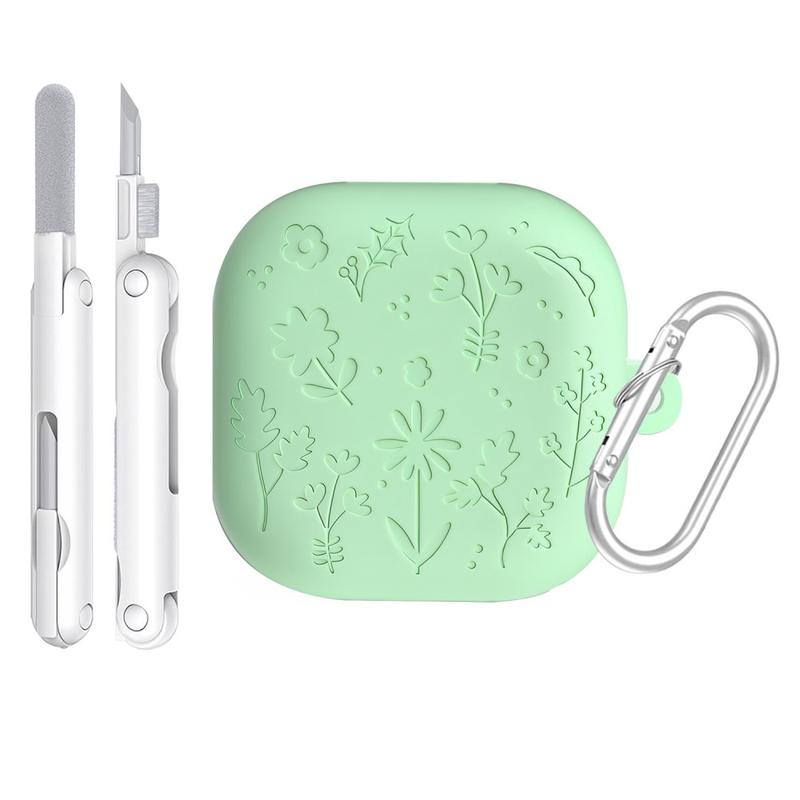 Floral Engraved Silicone Case with Cleaning Pens and Carabiner for Samsung Galaxy Buds4, Galaxy Buds4 Pro