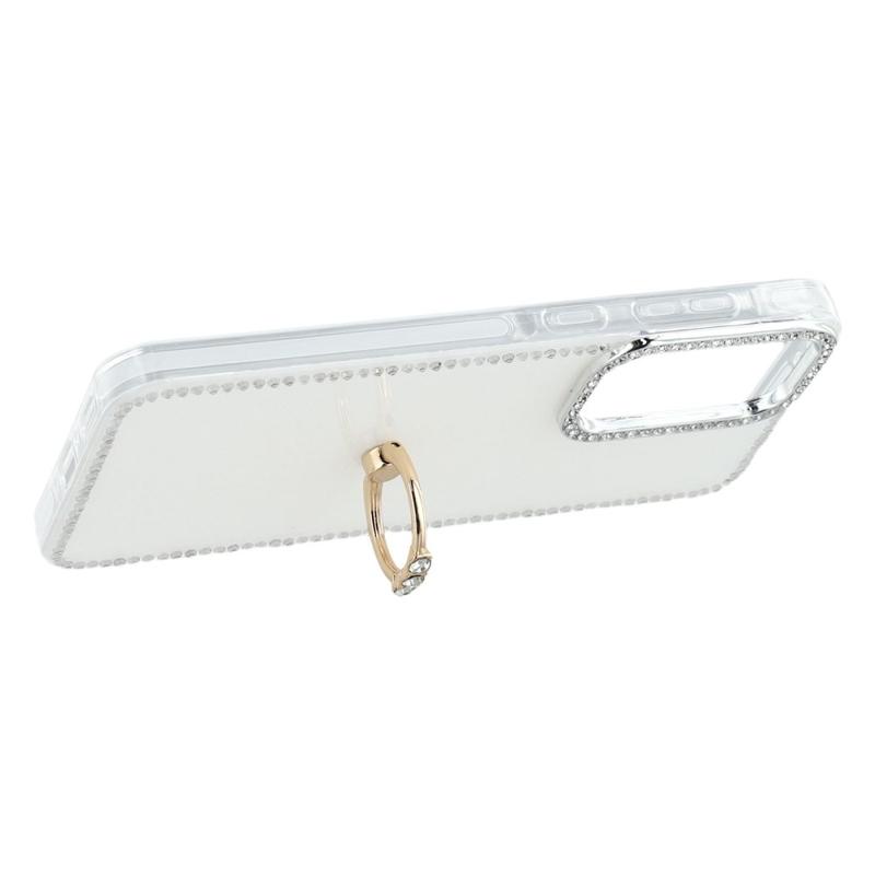 - Rhinestone frame around the camera island adds subtle brilliance without impeding lens performance.