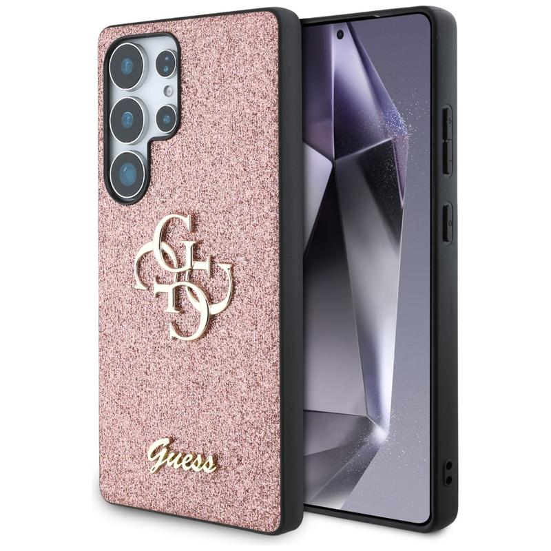 Samsung Galaxy S25 Ultra Guess Fixed Glitter 4G Metal Logo Case - Pink