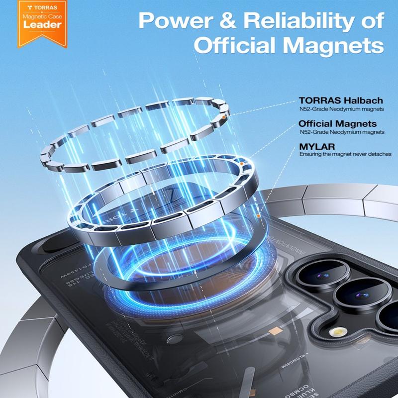 Equipped with N56 magnets and MegaMag-Boosted technology, the case offers up to 1.5× stronger magnetic attachment compared to standard cases. It connects securely with magnetic chargers, car mounts and other accessories, ensuring stable alignment and reliable wireless charging without removing the case.