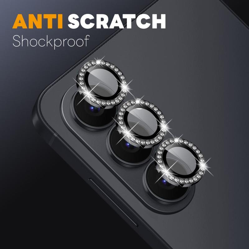 Add sparkle and protection to your Samsung Galaxy S26+ with the NORTHJO Camera Lens Protector. Designed with shimmering rhinestones and precision-cut tempered glass, it keeps your camera lens safe from scratches, dust, and impact while adding a touch of elegance and luxury.