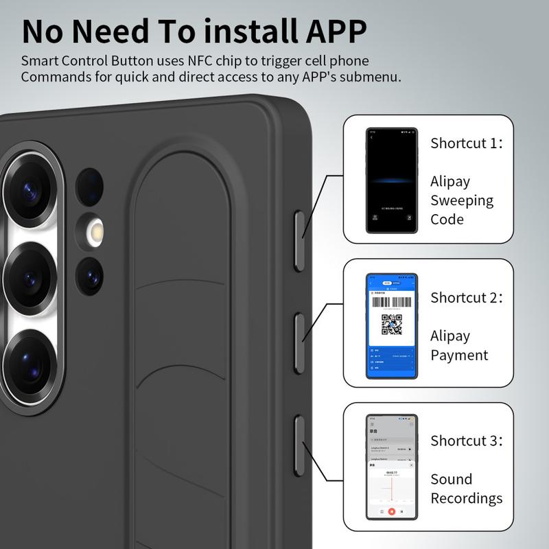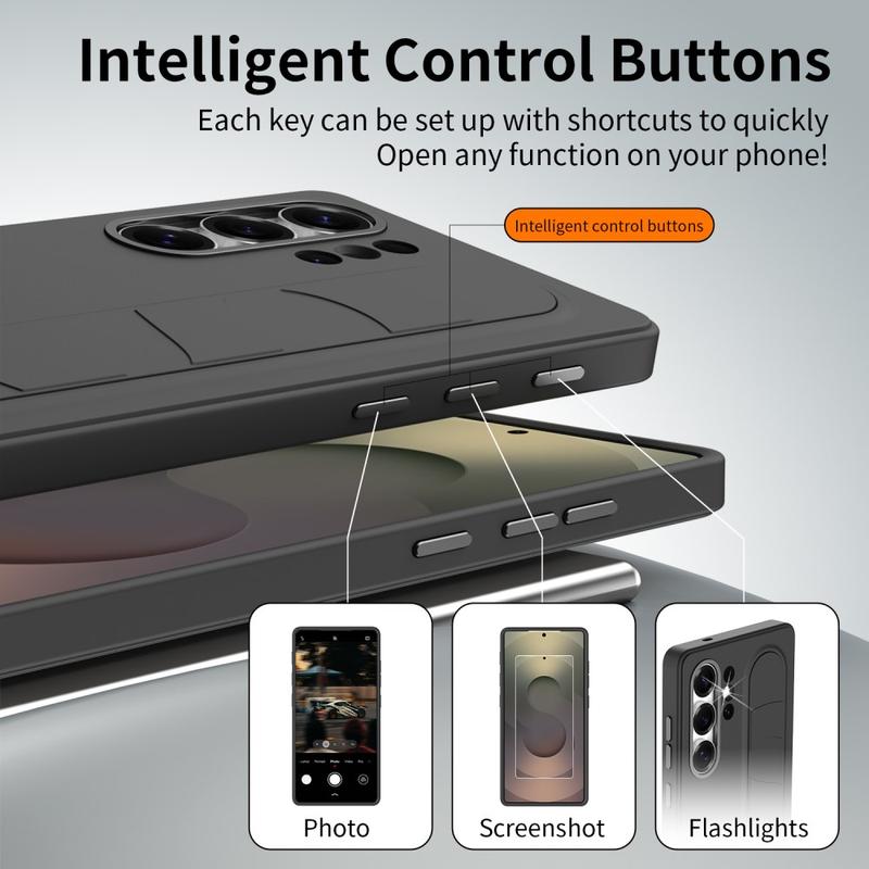 • Smart Hybrid Case with Standing Grip for Samsung Galaxy S26 Ultra - NFC Customizable Shortcut Keys, Wristband Kickstand & Alloy Camera Protection