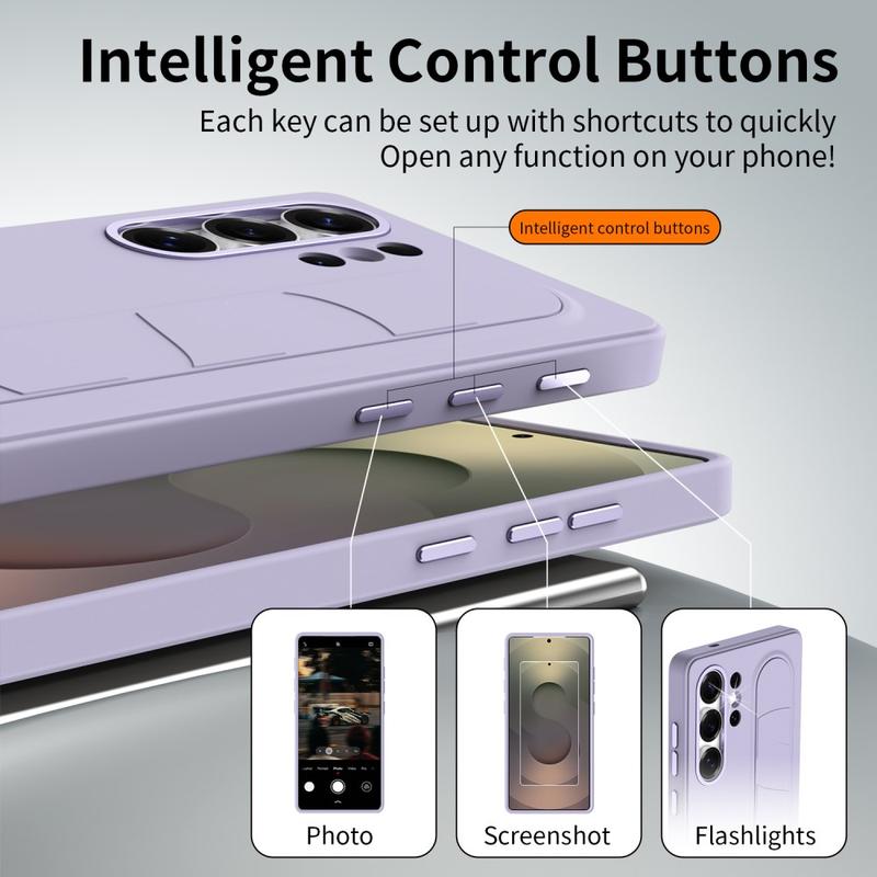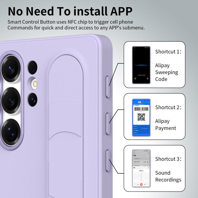 Smart Hybrid Case with Standing Grip for Samsung Galaxy S26 Ultra - NFC Customizable Shortcut Keys, Wristband Kickstand & Alloy Camera Protection