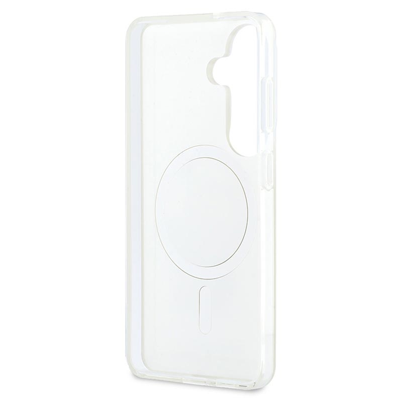 Upgrade your everyday look with the Karl Lagerfeld IML Karl and Choupette Back Logo magnetic case for Samsung Galaxy S26. Designed to combine premium style with practical protection, this hybrid cover features the iconic Karl and Choupette silhouette logo on the back for a modern, fashion-forward finish. With a rigid PC back and flexible TPU sides, it protects your phone from daily wear while staying slim, comfortable, and easy to grip.