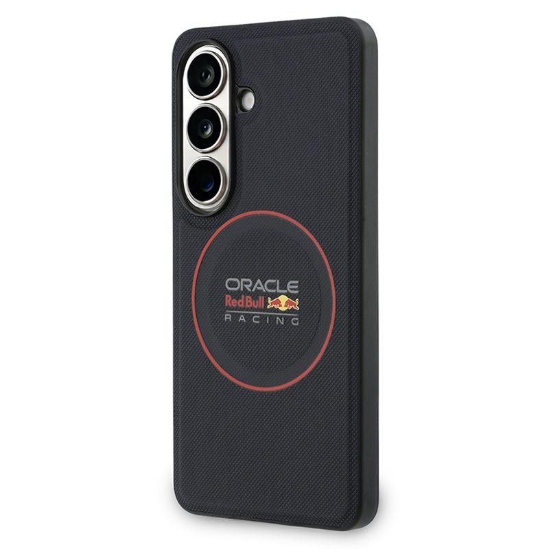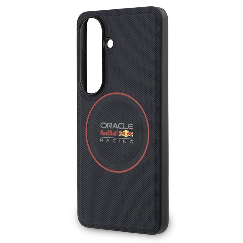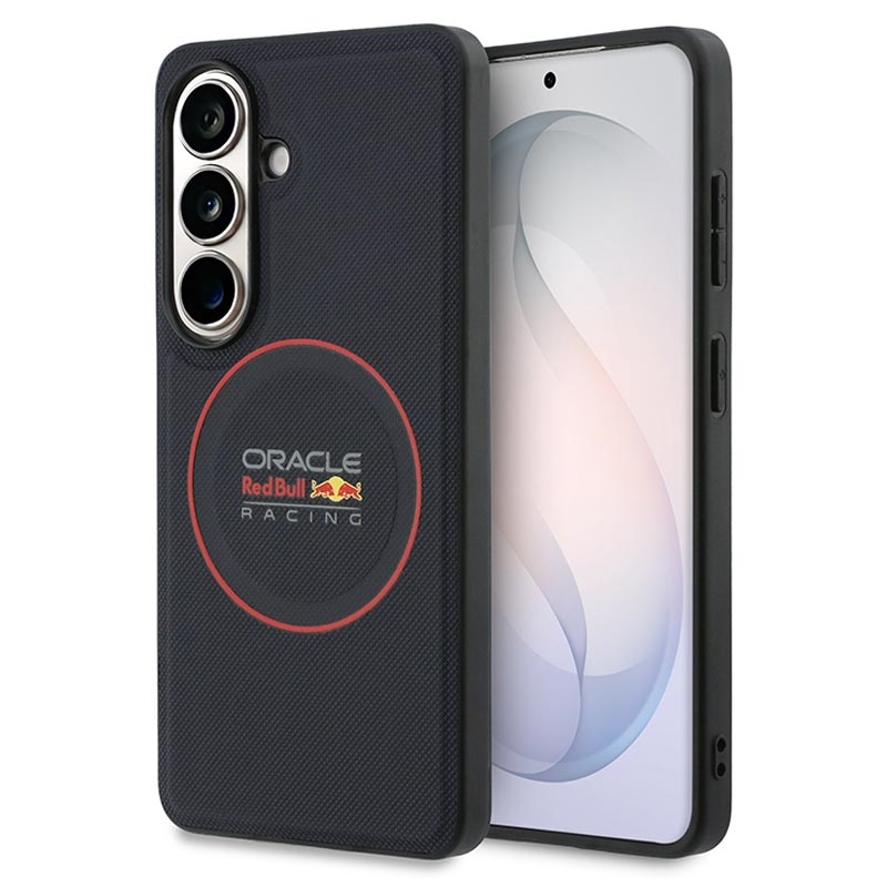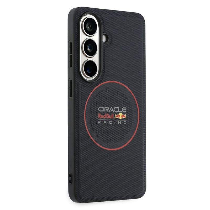 Bring racing energy to your everyday carry with the Oracle Red Bull Racing PU Meshed Red Ring magnetic case for Samsung Galaxy S26+. Inspired by the speed-focused world of motorsport, this premium case combines a protective PC and TPU structure with an polyurethane surface for a bold look and comfortable grip. The distinctive red ring and meshed styling deliver standout design, while the integrated magnetic function makes it easy to use with magnetic holders, for example in the car.