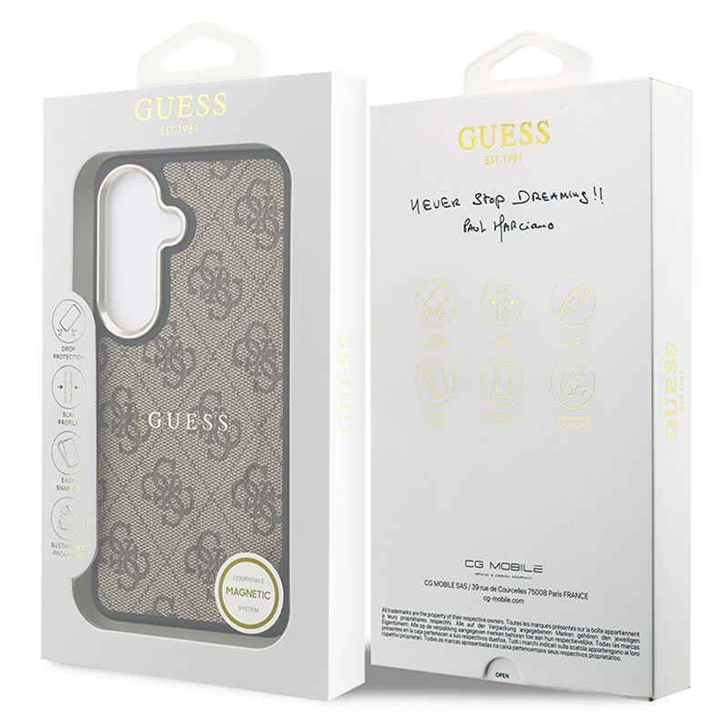 • Guess 4G Gold Frame MagSafe Case for Samsung Galaxy S26+ - Slim Protective Back Cover, Polyurethane, Wireless Charging Support