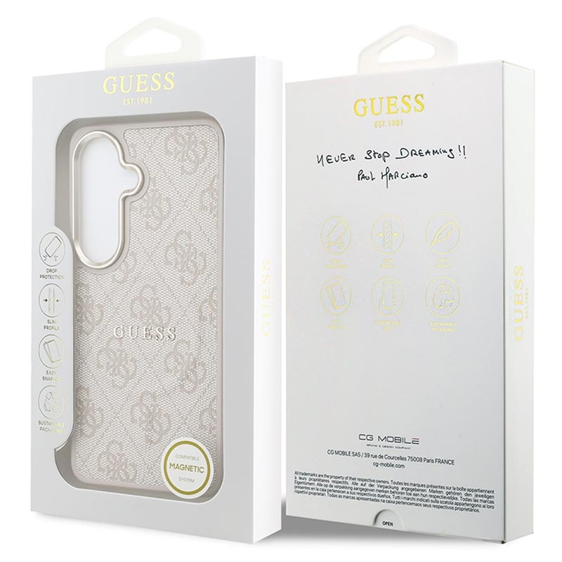 • Guess 4G Gold Frame MagSafe Case for Samsung Galaxy S26+ - Slim Protective Back Cover, Polyurethane, Wireless Charging Support