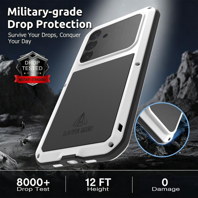 • Love Mei Powerful Hybrid Case for Samsung Galaxy S26+ - Heavy-Duty Metal & Silicone Shockproof Protective Cover