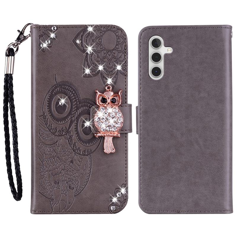 Samsung Galaxy S26 Owl Rhinestone Wallet Case - Grey