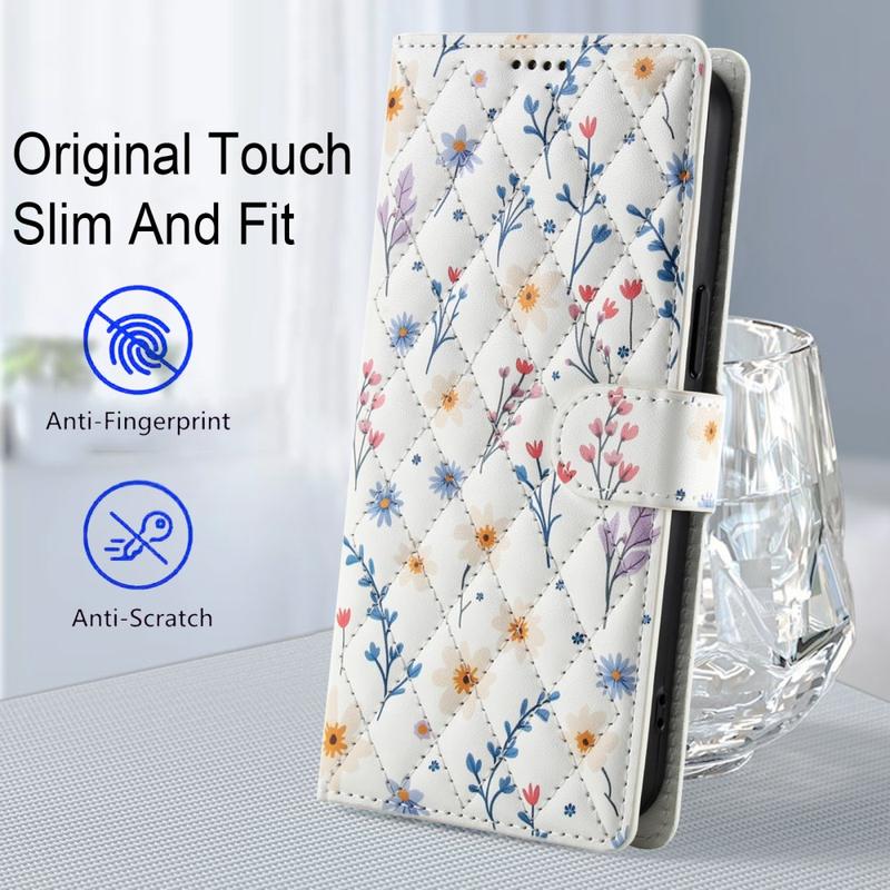 Refresh your Samsung Galaxy S26 Pro with a slim flip wallet that blends secure protection and everyday practicality. The rhombic stitched front and tiny floral pattern add elegant style, while a soft TPU shell cushions drops and a polyurethane wrap guards against scratches. Multiple card slots, a cash pocket and an included wrist strap make this case the one-stop carry solution for commute, travel or night out.