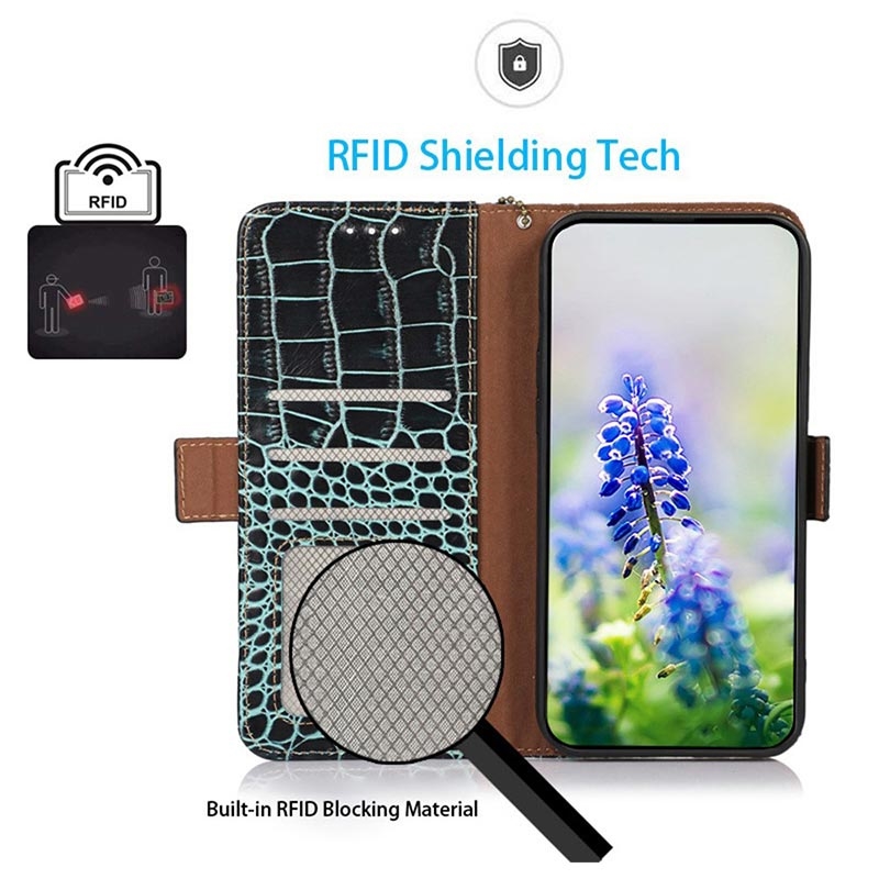 A lightweight and soft wallet case with a unique crocodile texture, the perfect choice to protect your Samsung Galaxy S26 Ultra and keep it undamaged. It's made of high-quality genuine leather and inner TPU material, designed with three card slots, an ID slot, and a pocket for cash, ideal for carrying your essentials next to your Samsung Galaxy S26 Ultra. Also, RFID technology effectively blocks signals and keep's your data secured.